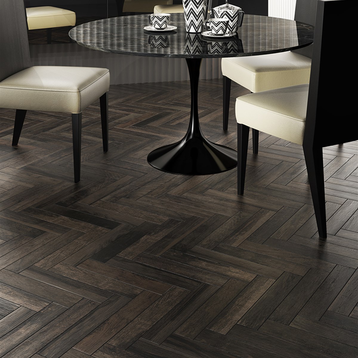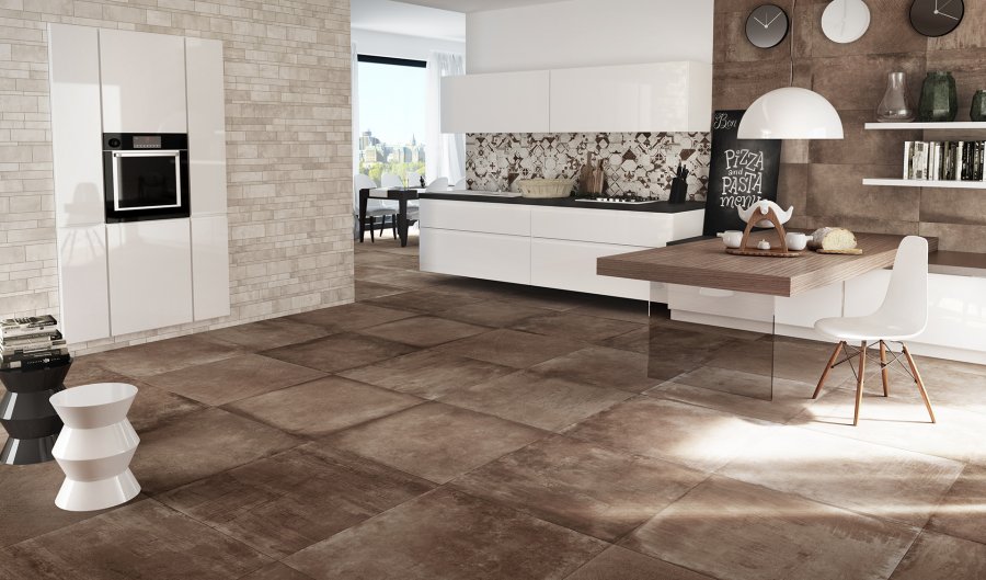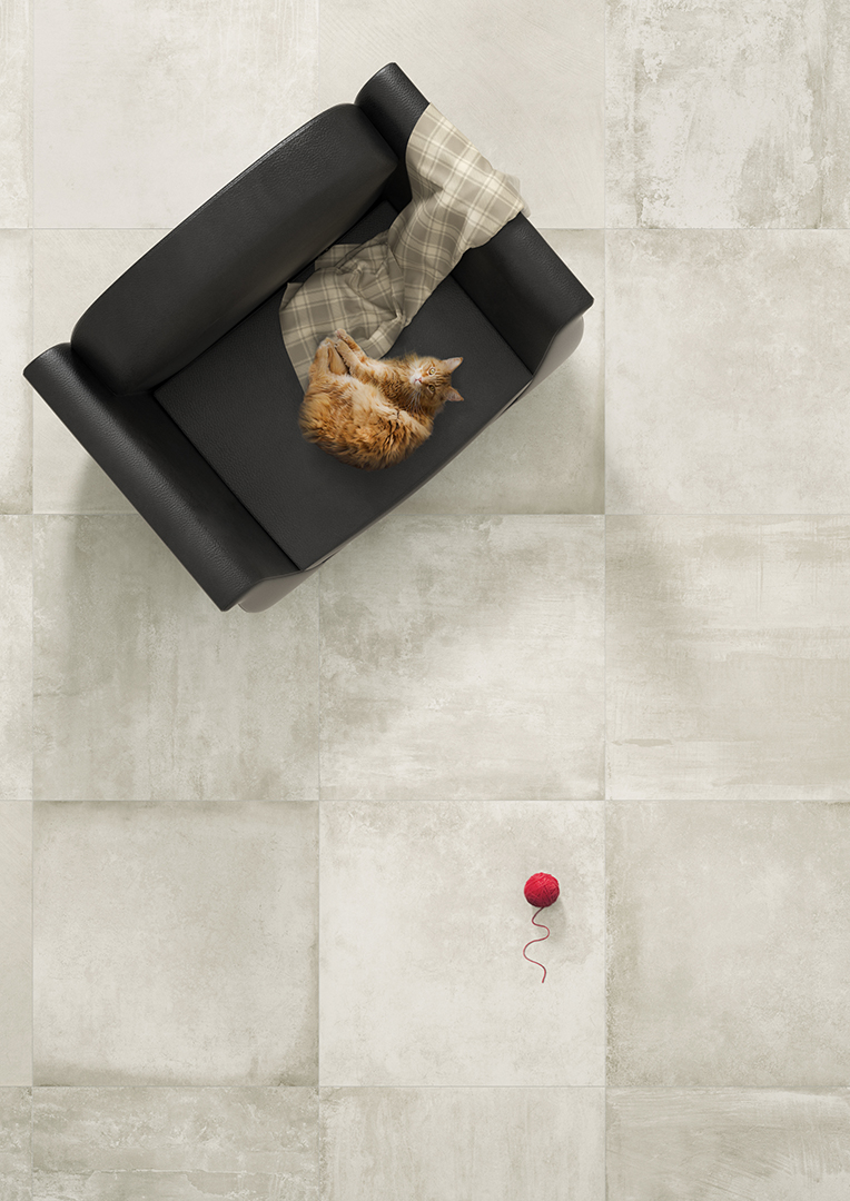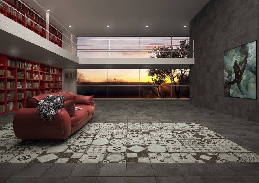 Un altro trend molto attuale è il cosiddetto Industrial Style che riprende materiali come le resine, i derivati cementizi e il poliuretano espanso. Questo è il look perfetto per un open space a pianta libera, dove il pavimento si sviluppa omogeneo, come un'estesa colata lavica che tutto ricopre al suo passaggio lento, graduale ma inarrestabile. Ceramiche del Conca propone a questo proposito gli stili Anversa, Elementi, Gardena, Alchimia, Evolution, Stone Capital, tutti declinati nei toni nero, antracite, verde petrolio, ghiaccio, tabacco, caffè, grigio e roccia.