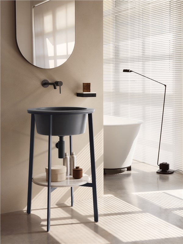 La collezione permette inoltre di scegliere tra diversi modelli di lavabo con struttura a terra e si arricchisce con una selezione di wc e bidet sospesi, pensati per donare omogeneità e coerenza stilistica all’ambiente bagno.