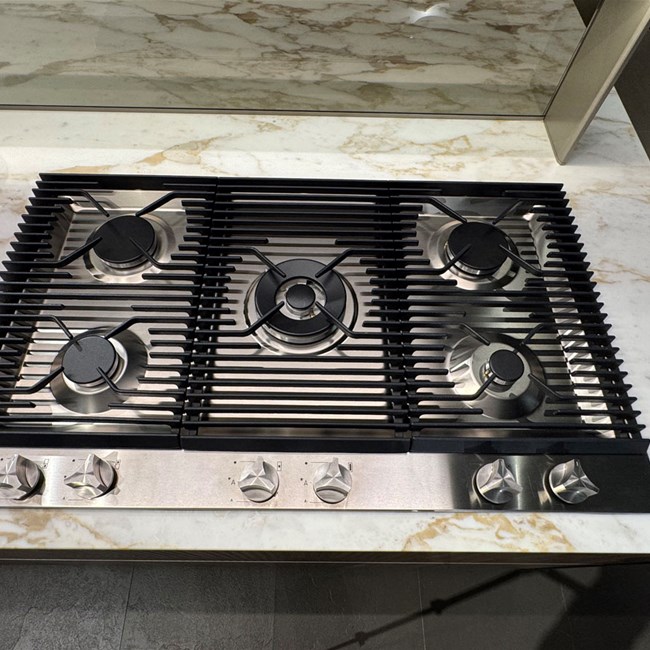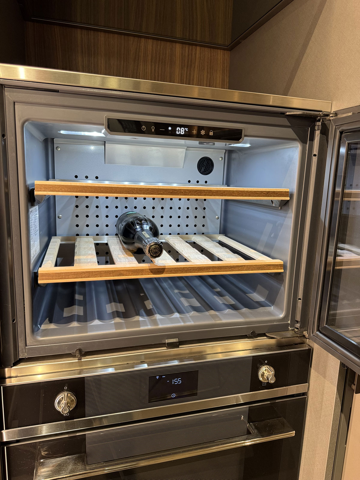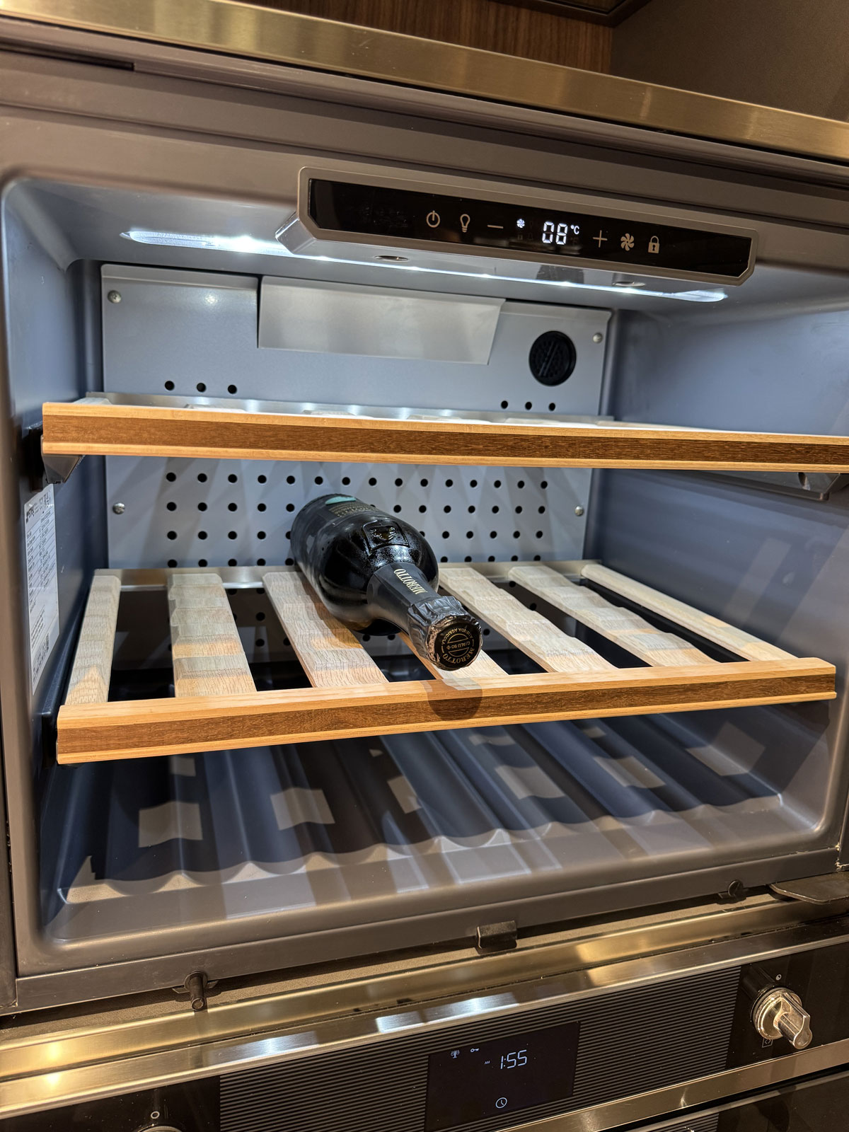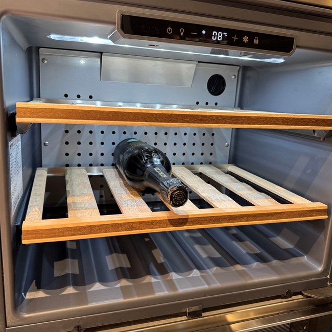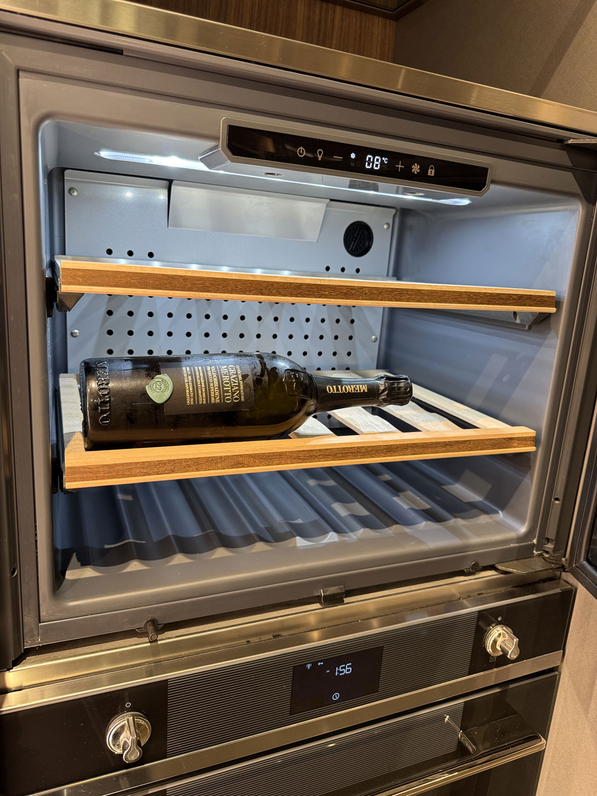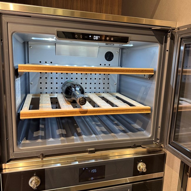 Elettrodomestici: piano cottura gourmet prof 90 Gourmet by Giuseppe Bavuso - lavastoviglie, forno, frigo, cantina Smeg - Lavello sotto top inox - cappa K-System acciaio con griglia in legno