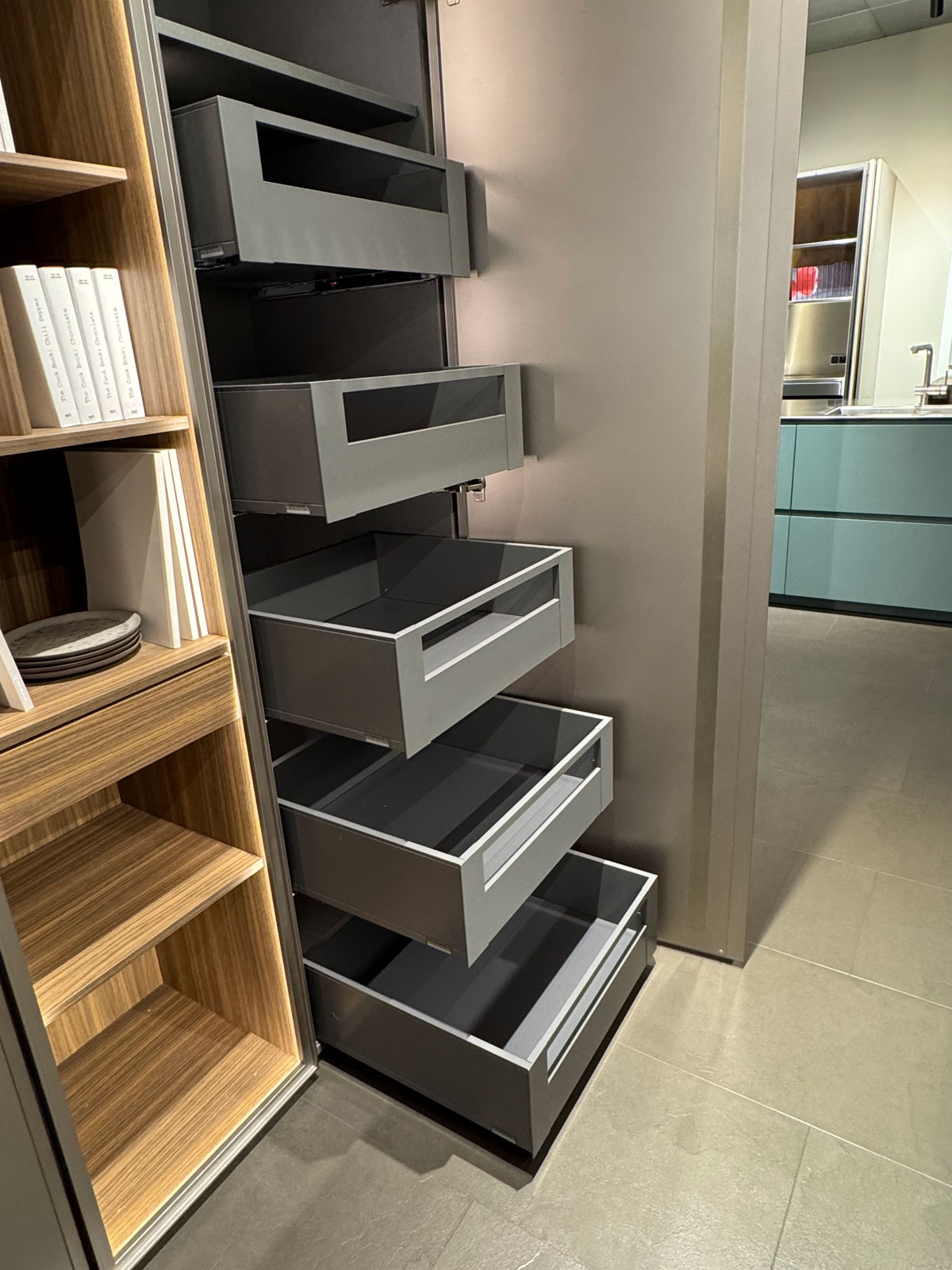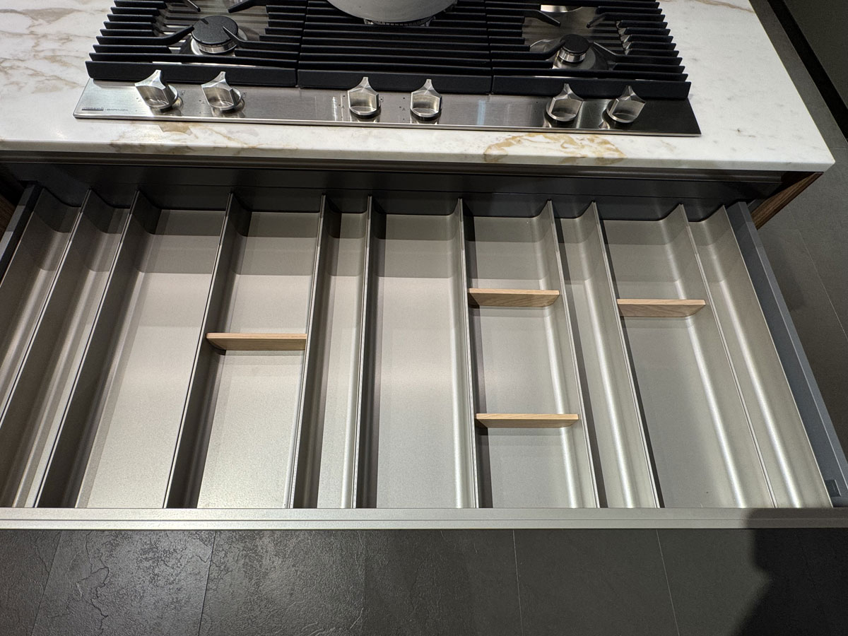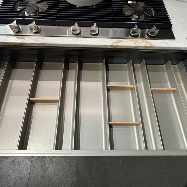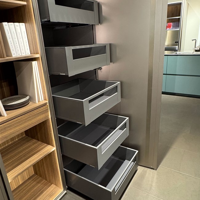 Accessori: portaposate Lux, secchi raccolta differenziata, porta bottiglie, porta bicchieri, colonne attrezzate con cestoni interni, porta coltelli, porta spezie e tanto altro